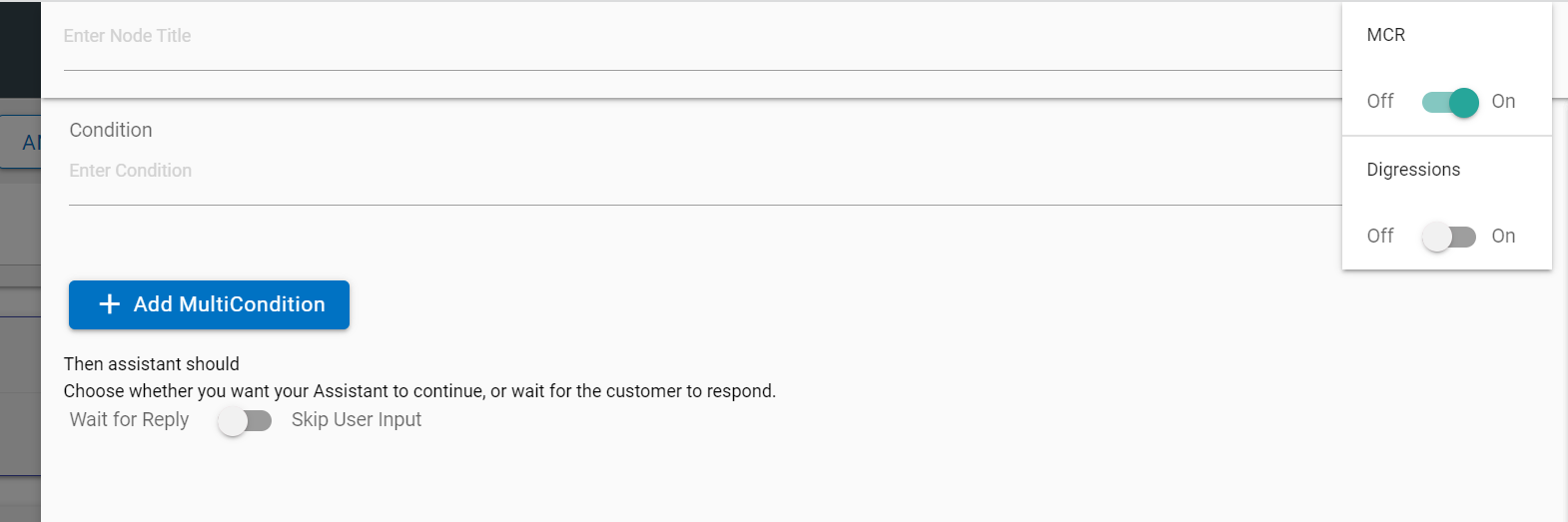 MCR - On enabling (MCR) Multi Condition Response toggle, the editor changes to a multi-condition editor.