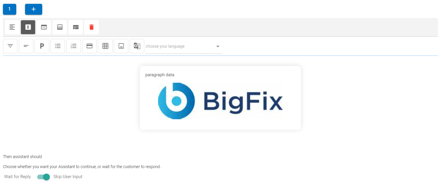 The WYSIWYG (What You See Is What You Get) editor in the Use Case Design Console provides a low-code approach to building conversations and dialogues for BigFix AEX. This provides a simpler point and click editable view to create rich HTML and plain text BigFix AEX responses, which are the same as what the end user would see when using BigFix AEX. This reduces the need for cognitive SMEs to write HTML tags explicitly and makes the use case/response creation easy.