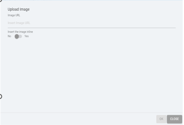 - For other components, the Upload Image dialog box displays the option of inserting an image inline.