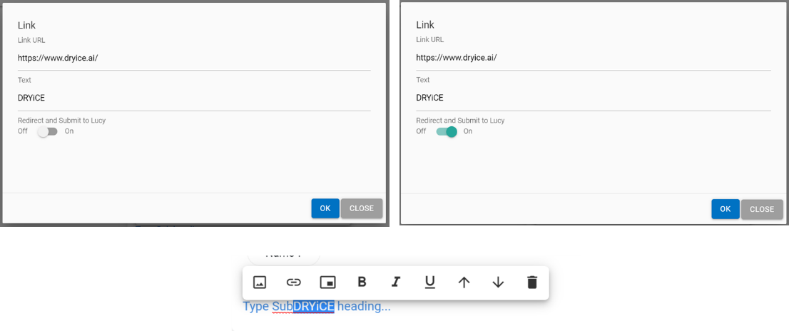 This option inserts a hyperlink in the response, which is added inline wherever the cursor is clicked. There are two types of links: