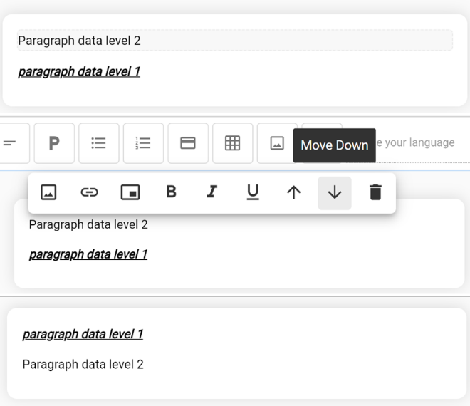 A new component is always added to the end of the current response by default; however, it can be moved up or down using the appropriate action.