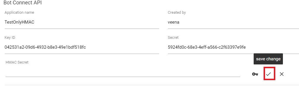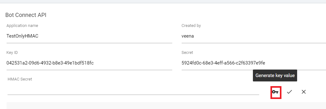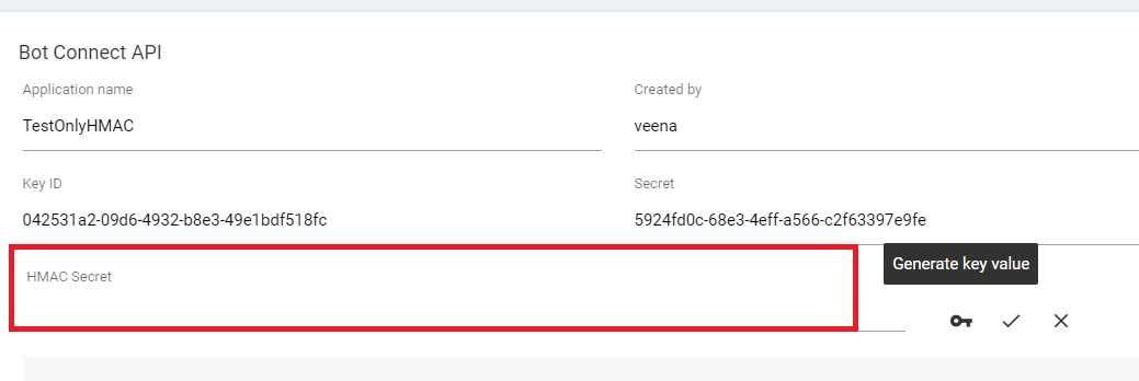 - Clicking on the edit icon provides the field to enter a new key as shown below: