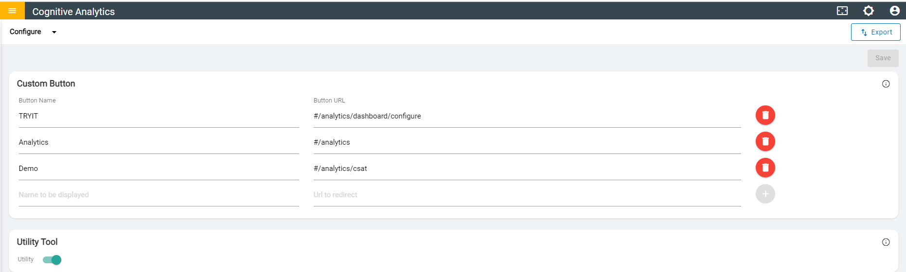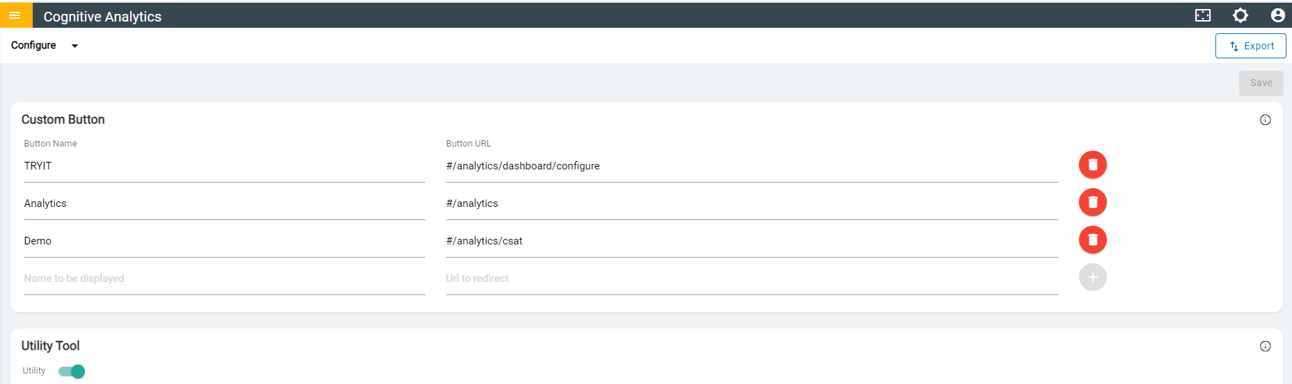 In the first row, there is one card where the user can add and delete a custom button by giving name and URL to redirect.
