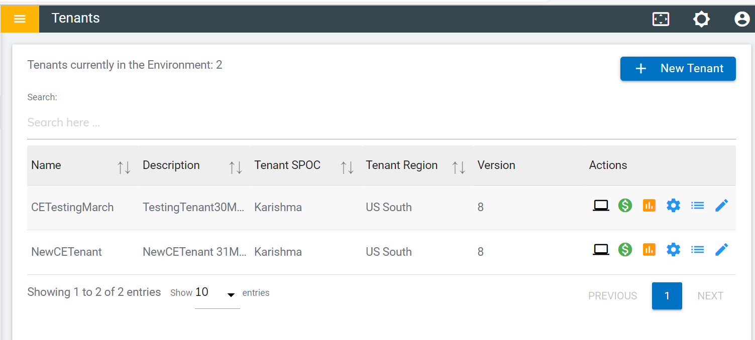 - Log into Global admin console and navigate to Tenants page under Provider tab.