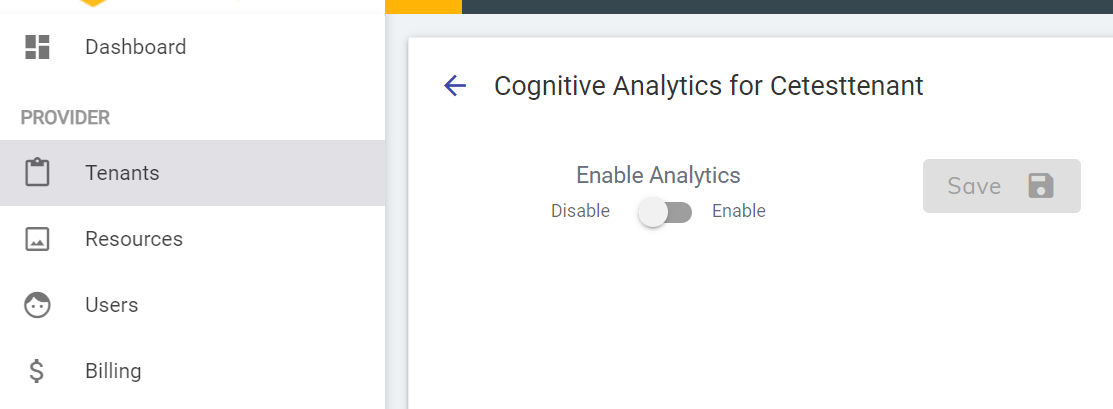- Enable Conversation Analytics by clicking on the toggle button and click on Save. You