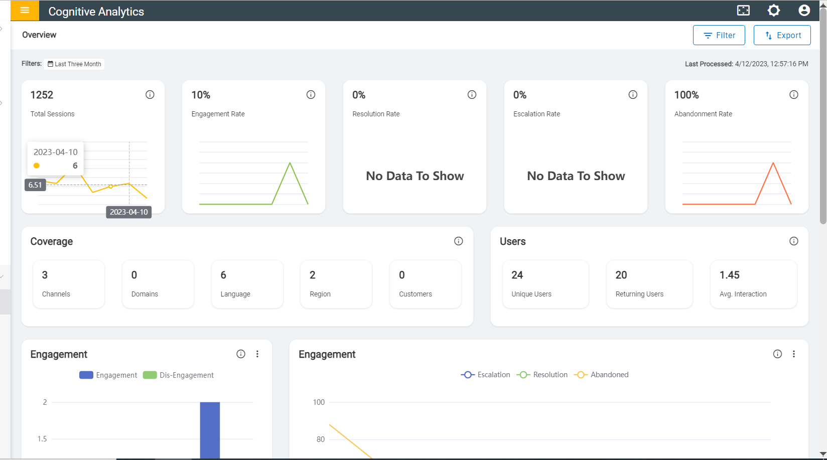 - This will open Cognitive Analytics Dashboard which consists of various parameters and
