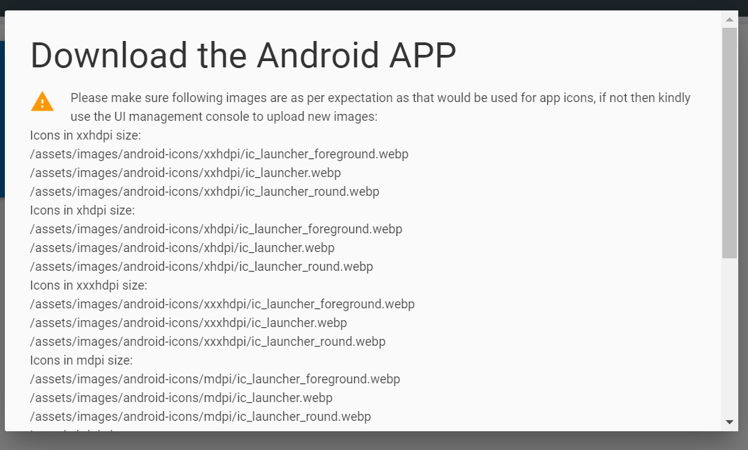 - Click on Android Native App, the following screen appears: