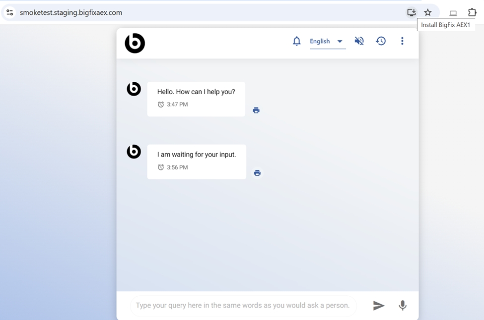 - Open the tenant-specific URLhttps://tenantURL.bigfixaex.com/ in Chrome browser.