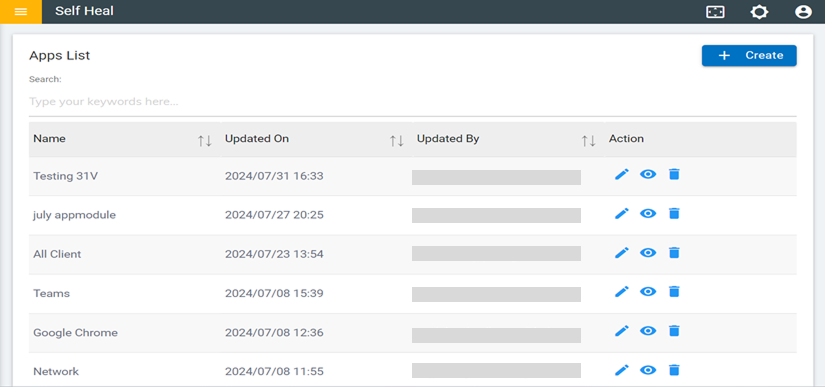 - To create a new app, click the Create button.