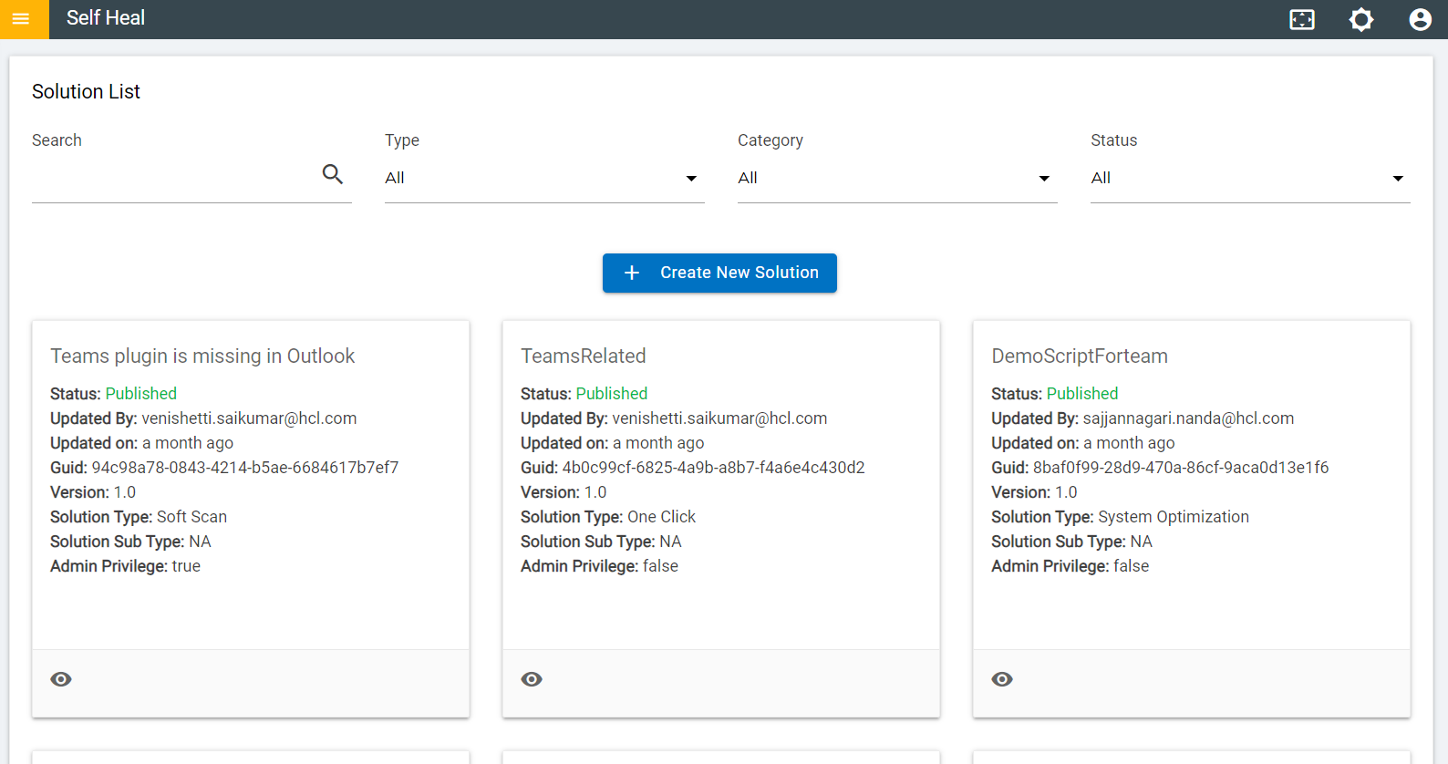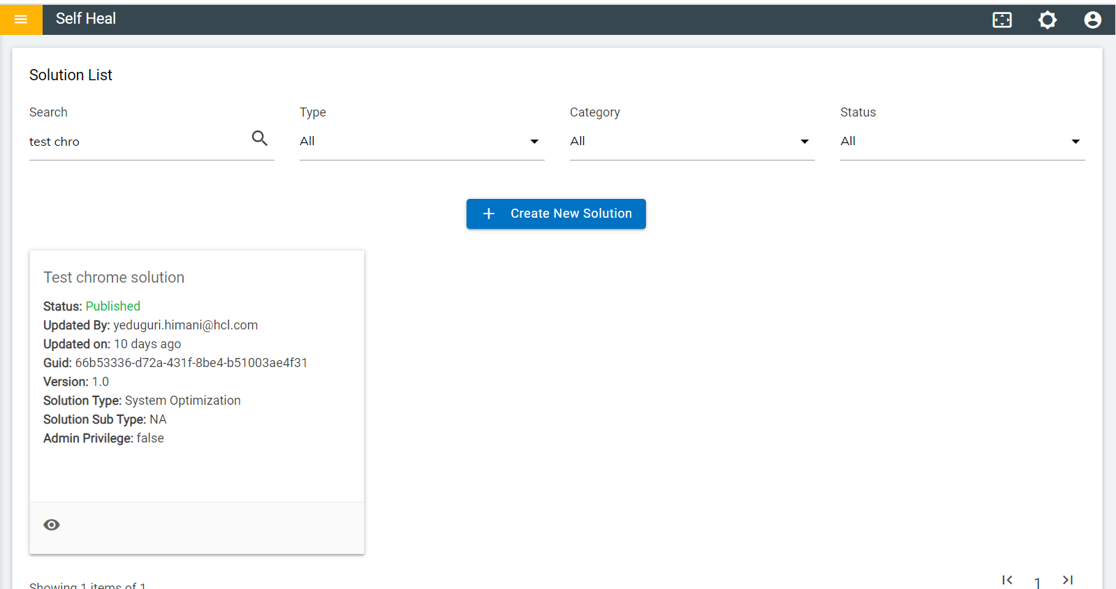 - The Status of a published solution becomes “Published” and it is reflected