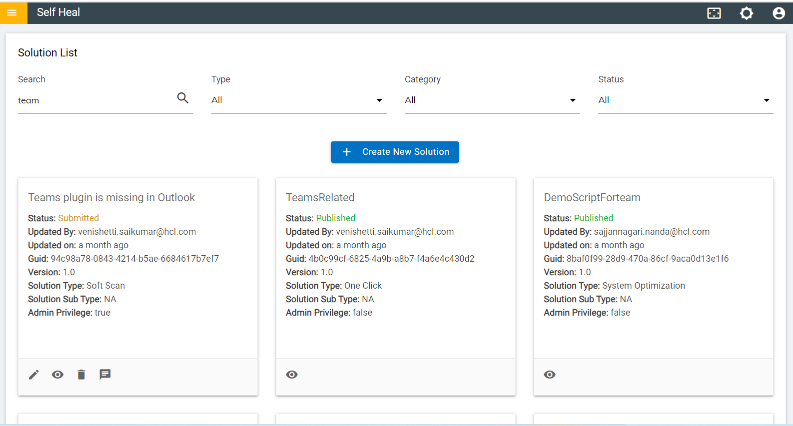 - To edit the solution, the admin must unpublished the solution, by clicking on the