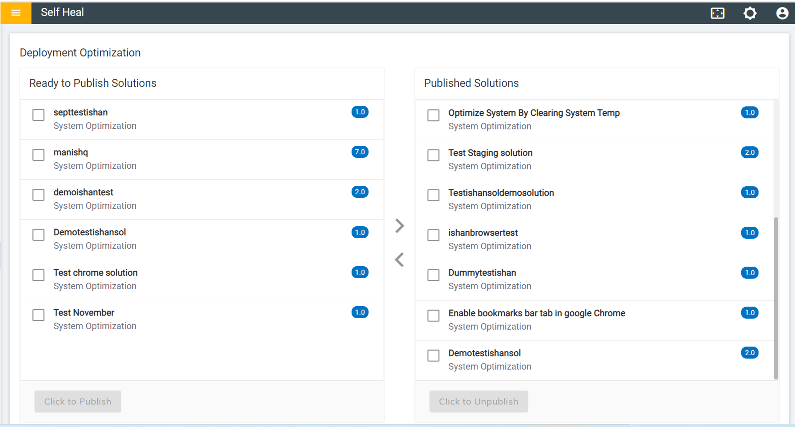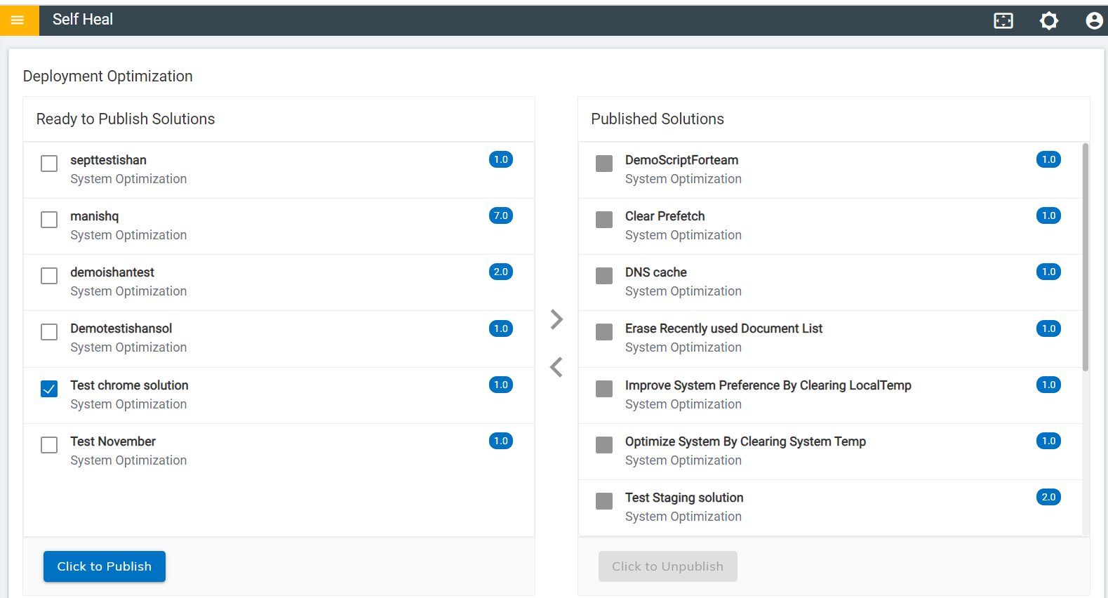 Figure 8. Published Solutions Section for Optimization