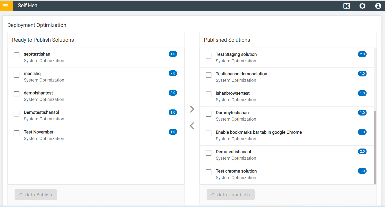 - When the automation module is created with “Optimization” as Solution Type, ‘it comes under the Ready to publish section.