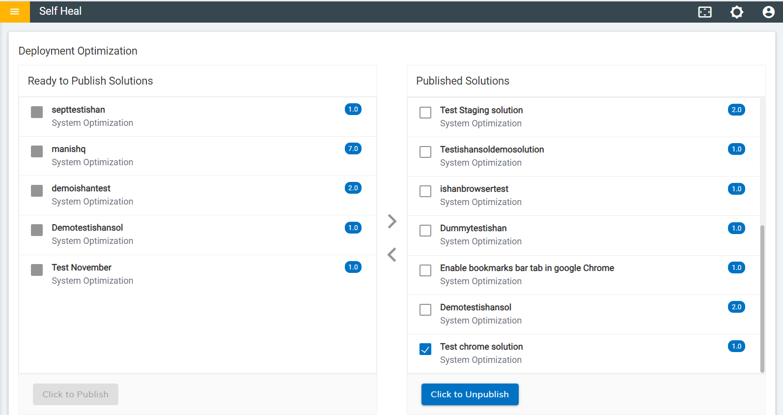 - The solution starts reflecting under the Ready to Publish section again.