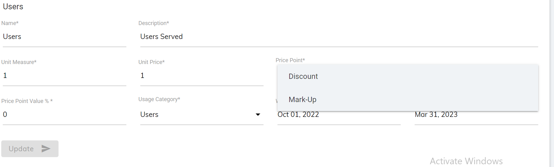 - Markup Billing: It lists the markup billing templates generated by the provider.