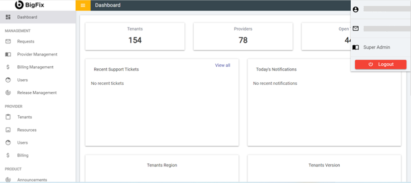at the top right corner of the home page. - Select Logout button from the drop-down list.