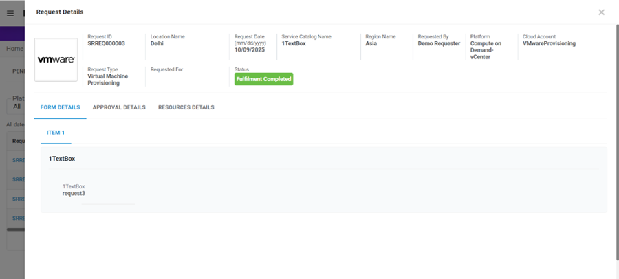 | Requester Name | Name of the person who has created the request |