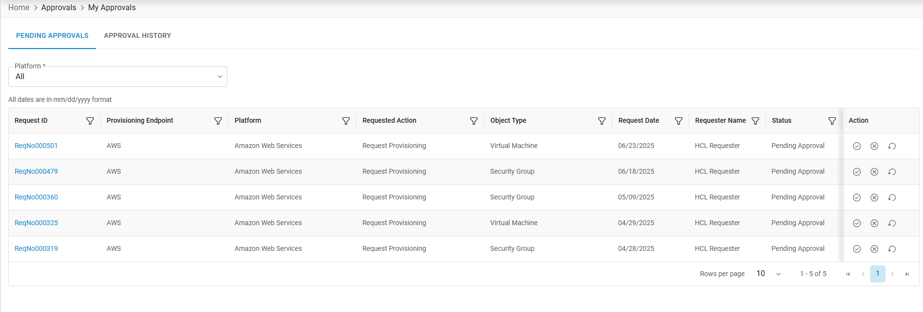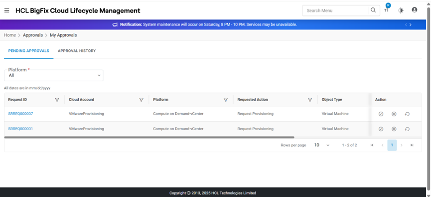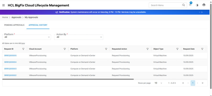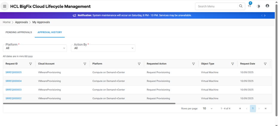 - Selected Request Id has been approved and moved from My Pending Approval to Approval History.