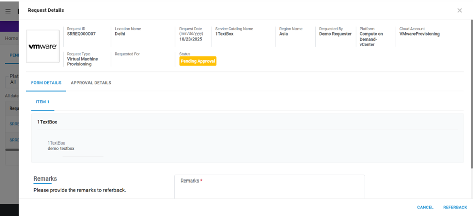 | Action | It allows the Approver to take actions like Approve, reject or refer back the request |