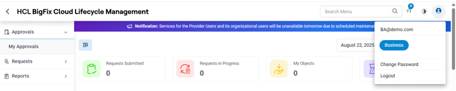 - On successful login, HCL BigFix CLM homepage for Business Approver appears, as shown below.