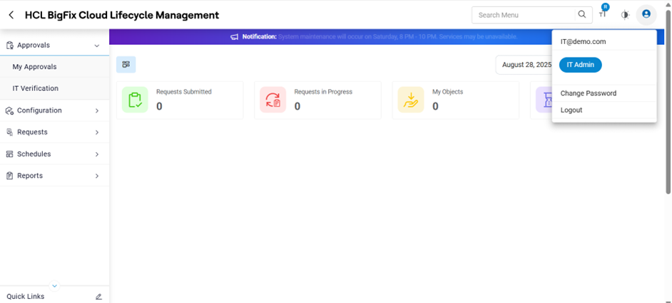 - On successful login, HCL BigFix CLM homepage for technical approvers appears, as shown