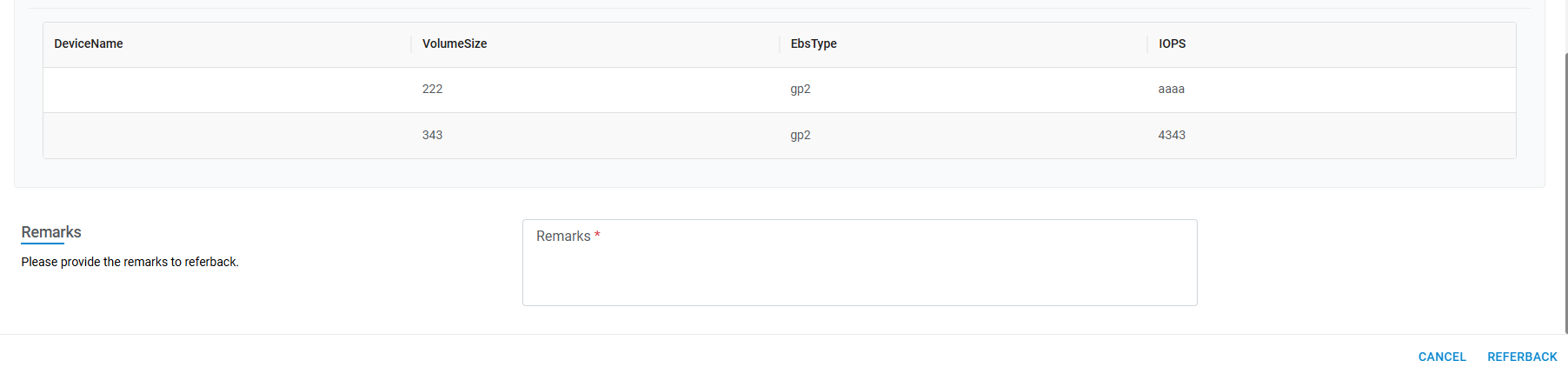 against the request ID. A window pop-up with request details. - If required, enter Remarks in remarks box and click Refer back.