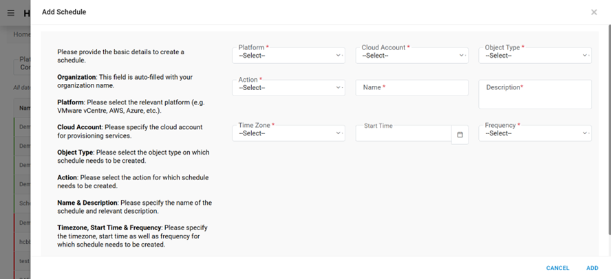 This section lists all the Schedules that have been created by an organization admin.