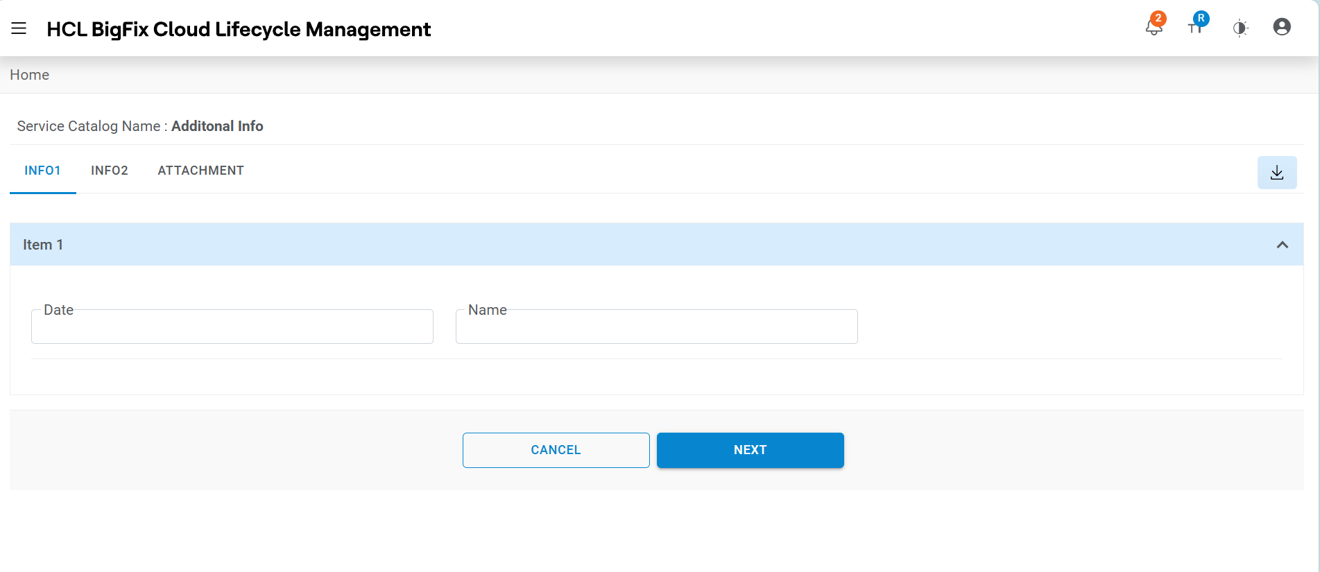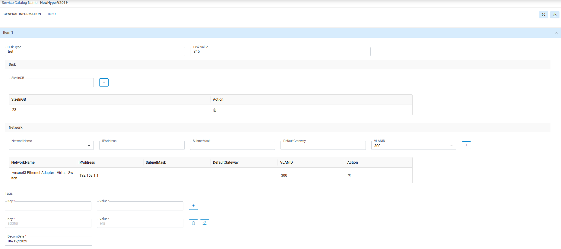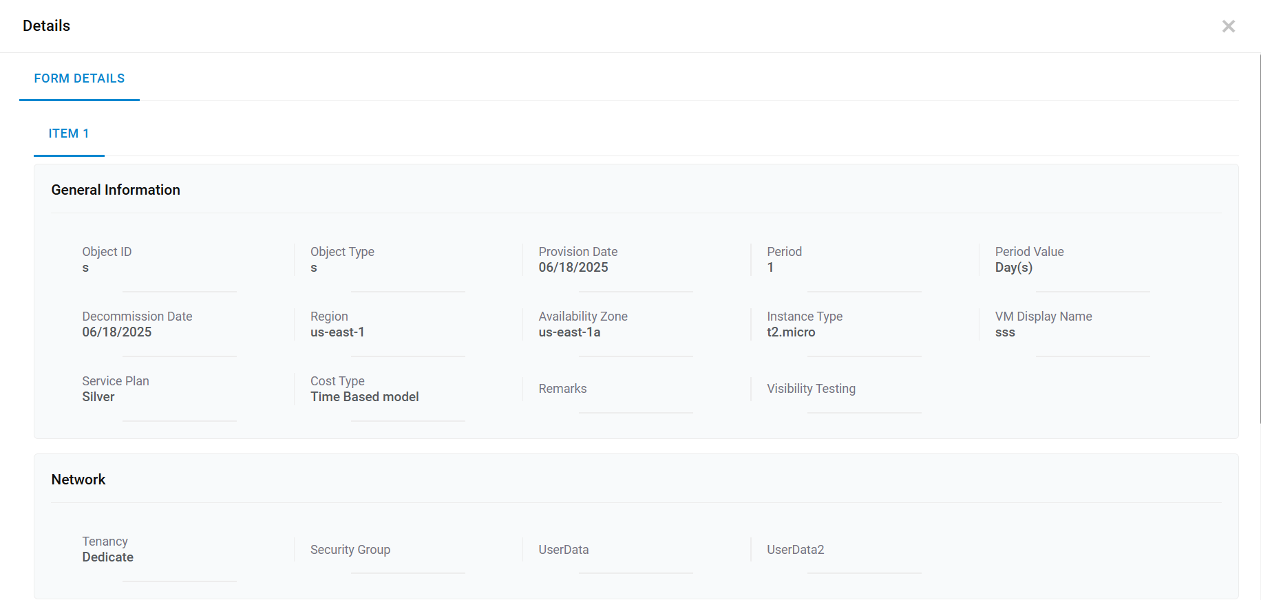 - This displays the Request Form associated with the service catalog to fill in the Information.
