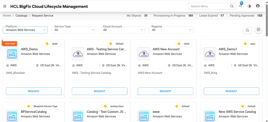 - Based on the filter parameters selected in the above points, Service Catalogs will be