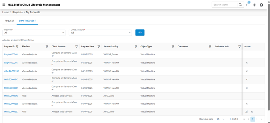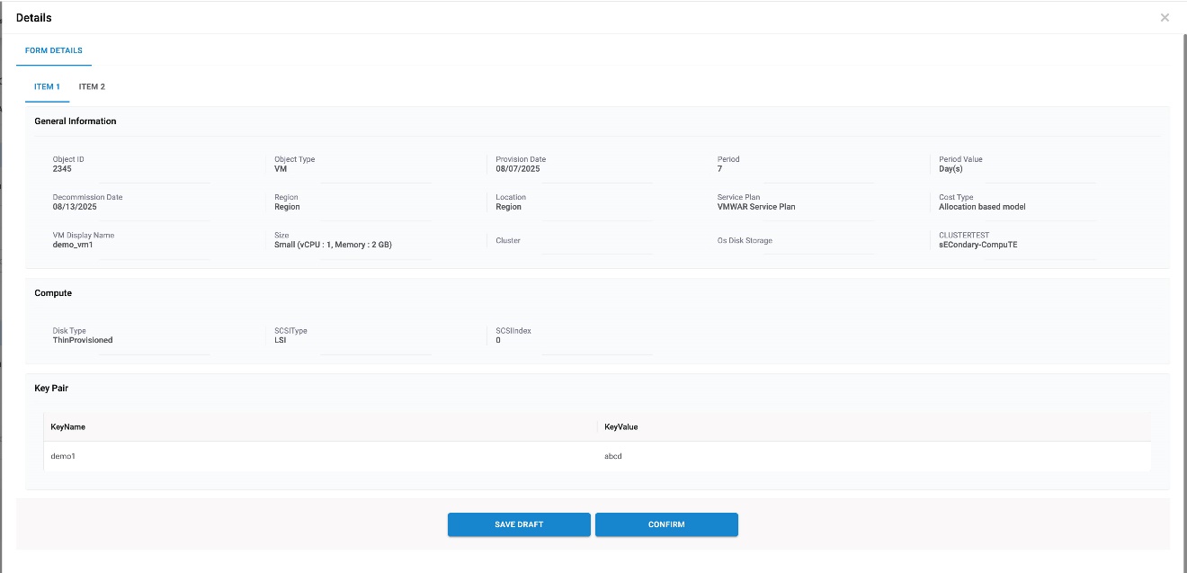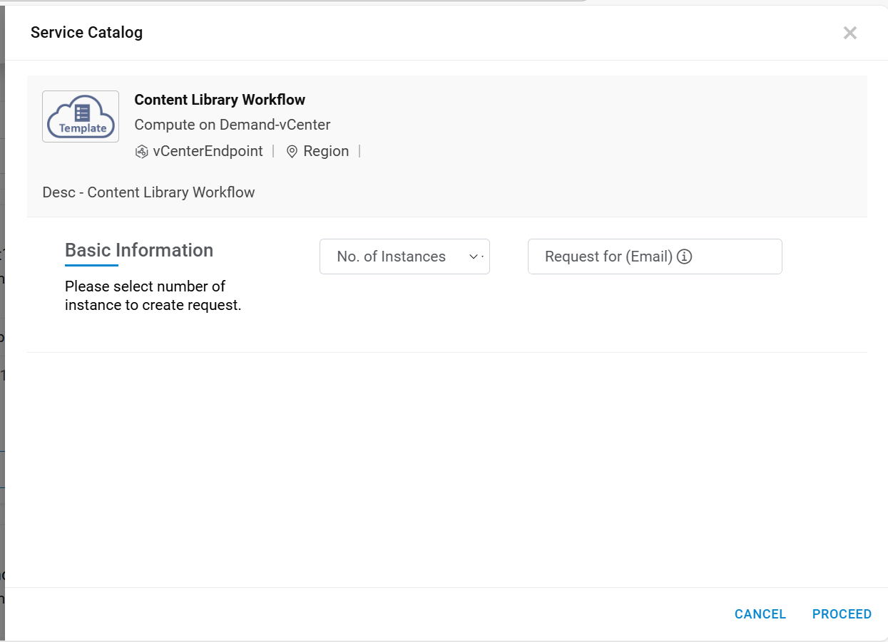 To proceed with service requests that have VMware as a cloud provider, the end-user needs to follow the steps below: