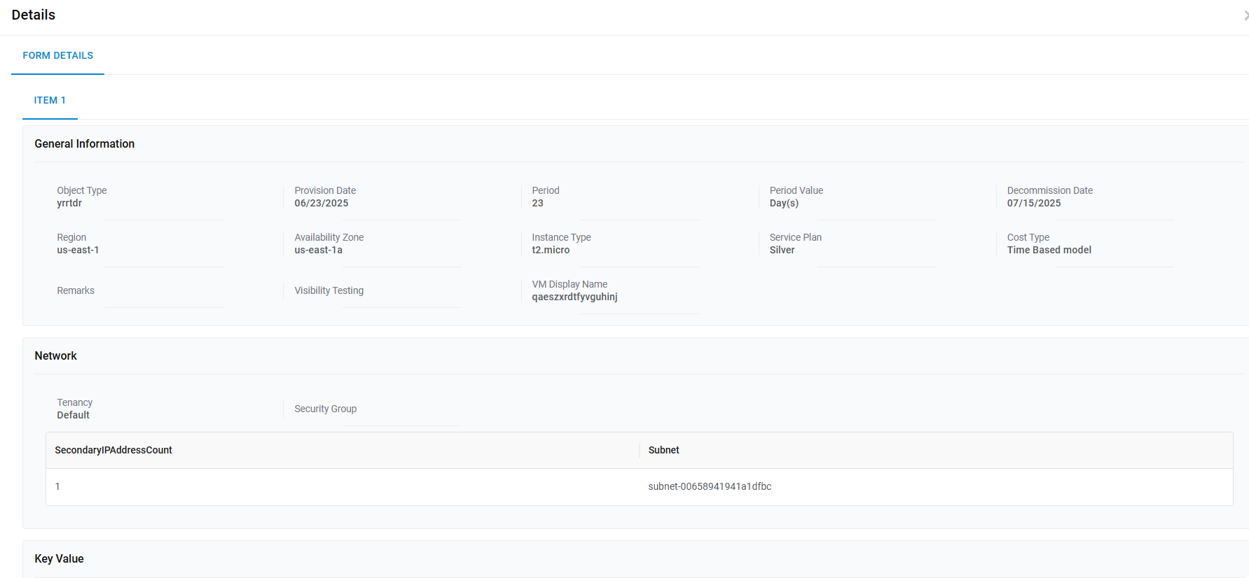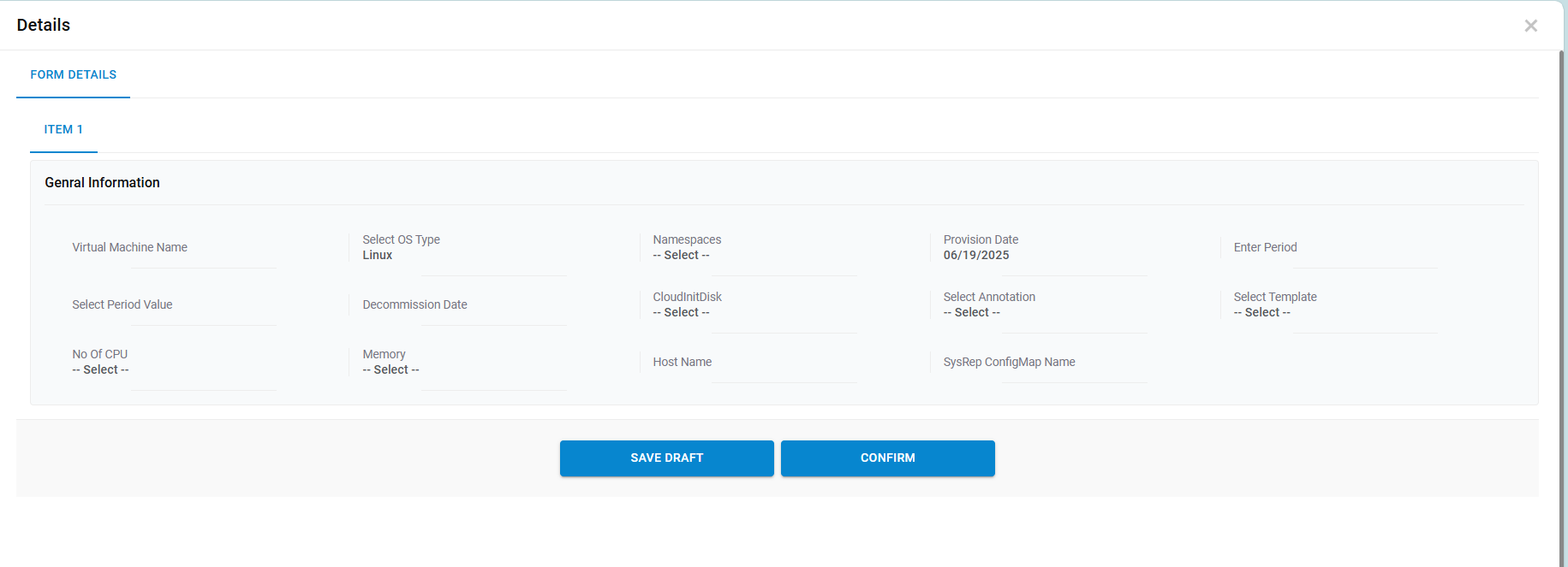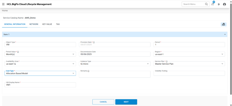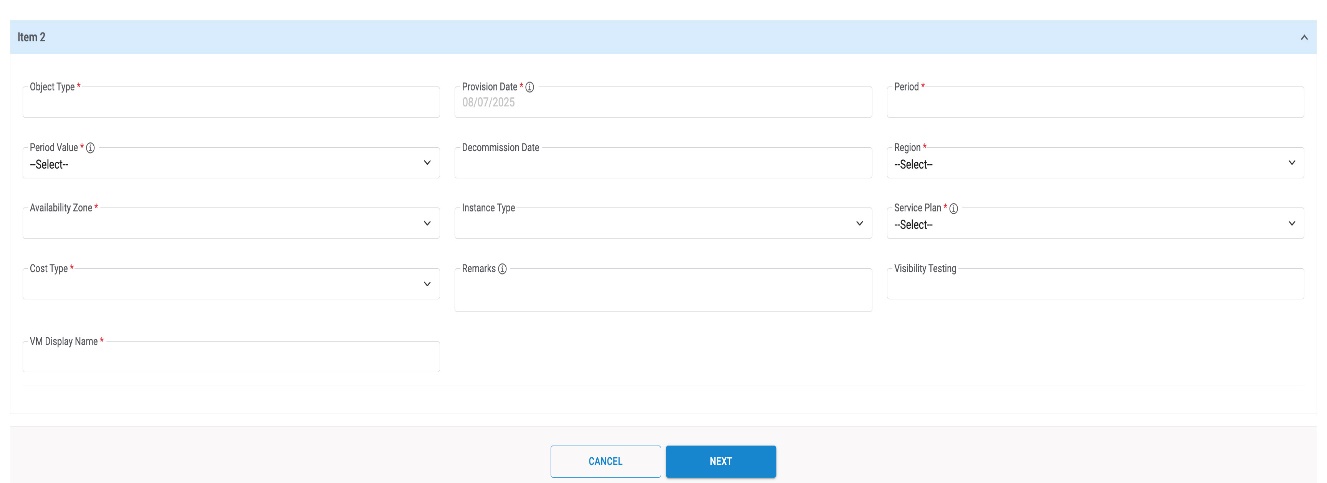 | VM Display Name | Name to be displayed against the Resource being created |