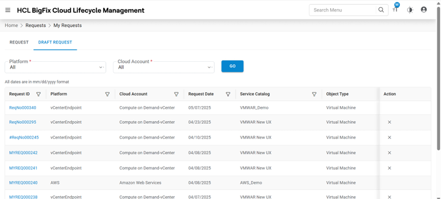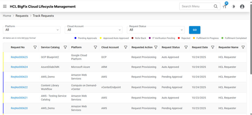 | Request Date | Displays the date of the request created |