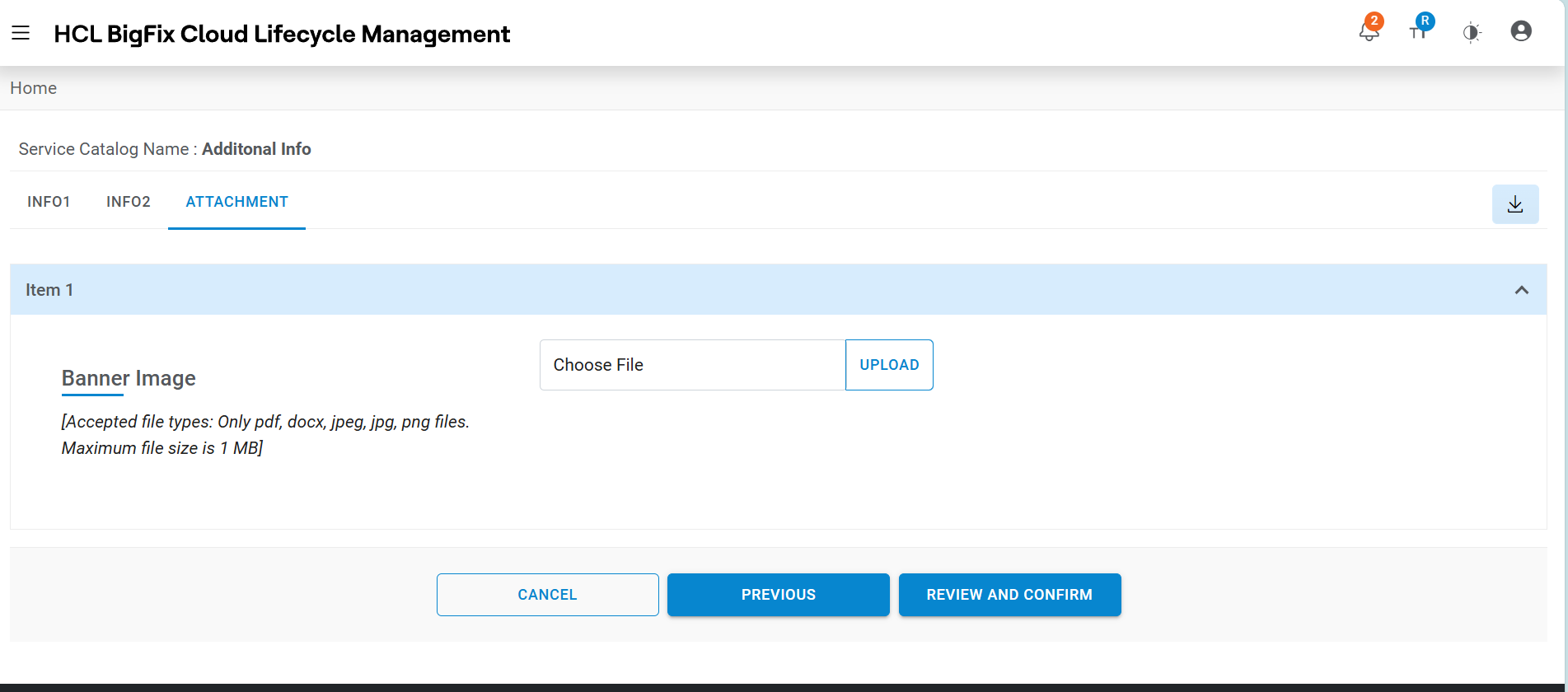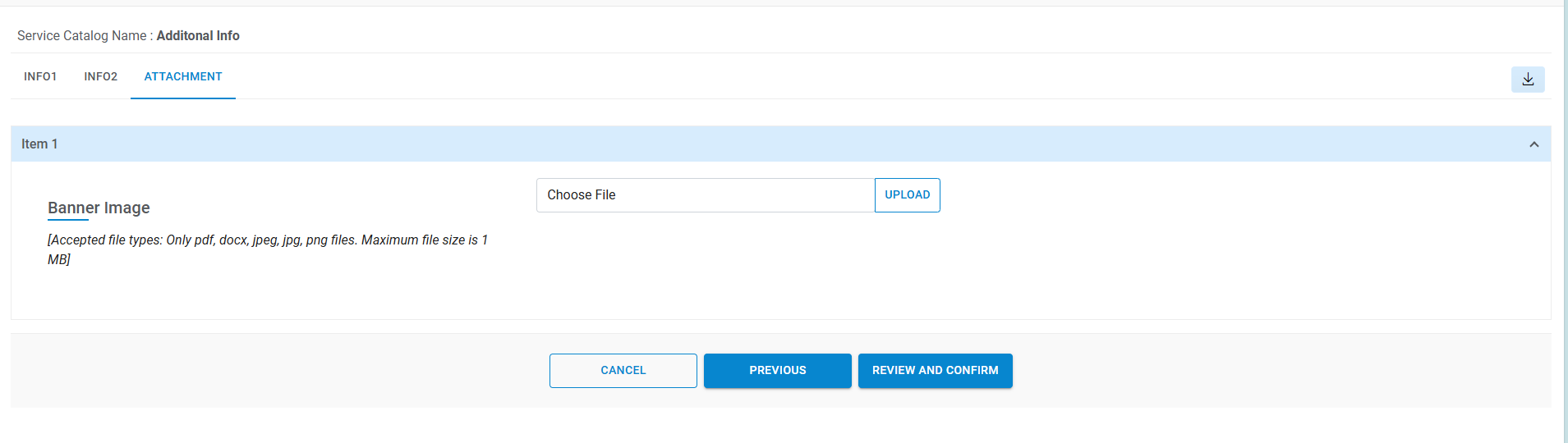 This tab will be displayed, if Document Upload is enabled for service catalog by selecting “Allow Document Upload” setting to true on publish service catalog screen.
