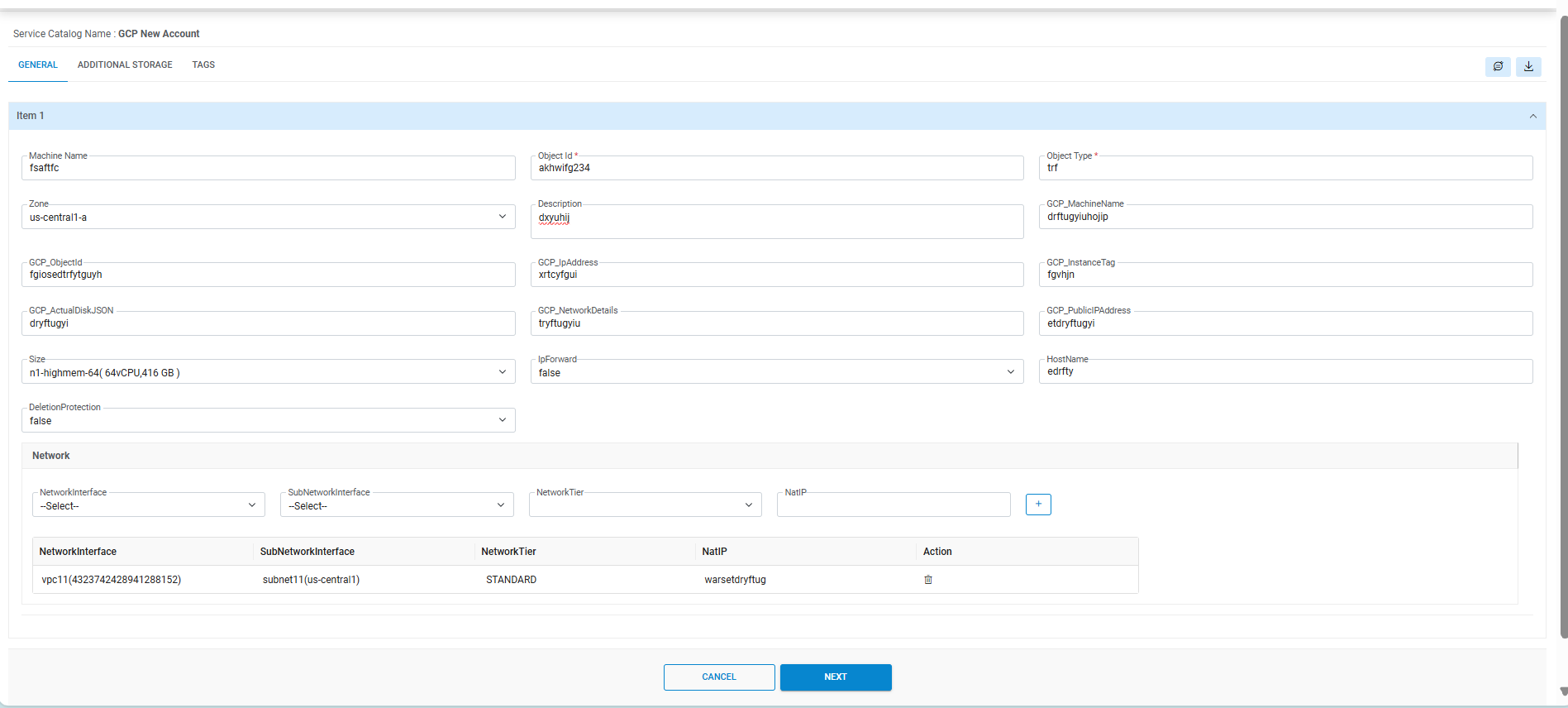 - Select Machine Name, Zone, Size, Network Interface, and
