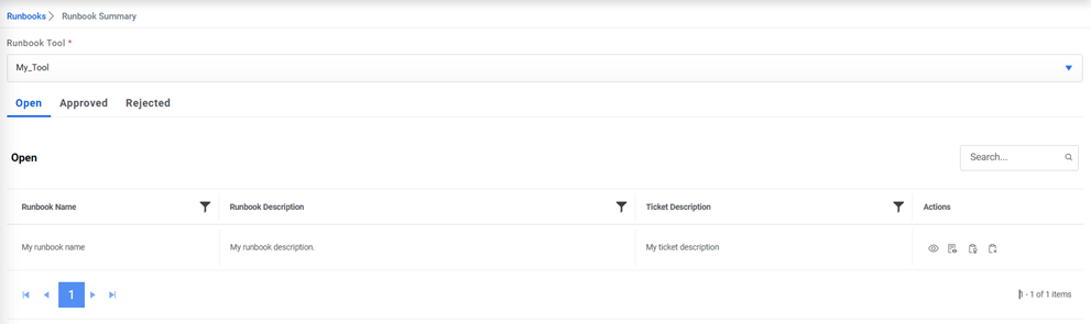 In Open tab, all the runbooks generated from GenAI which are pending for approval/rejection are available.
