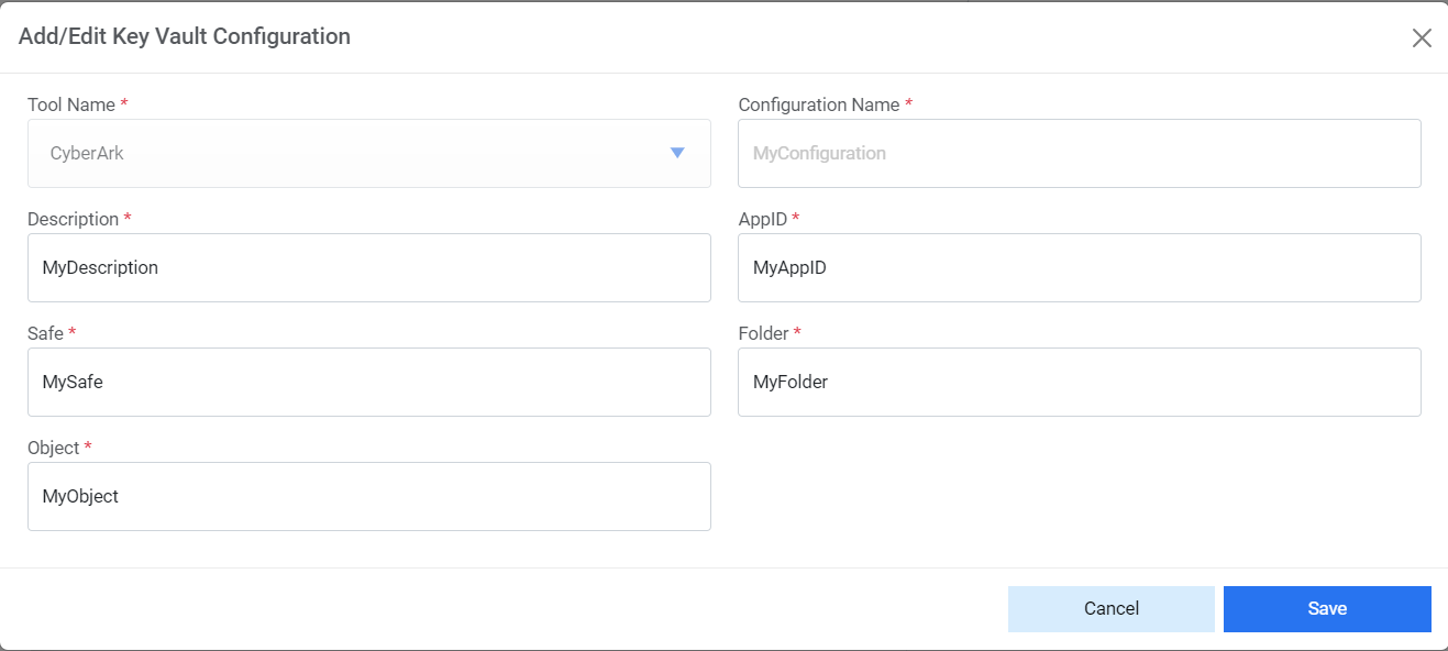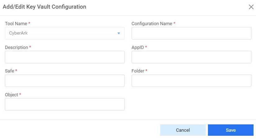 appears. Edit the details and click on Save.Figure 10. Key vault Configuration (Cont.) (Cyberark)
