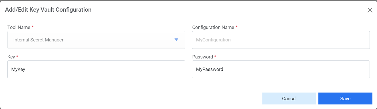 - Enter the key value such as MyPassword in case of password for any configuration.