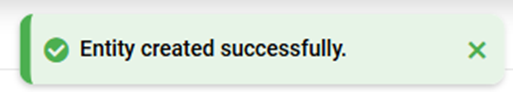 - The Entity Creation page appears. It enables the user to add a new entity and lists the existing entities in a tabular view.