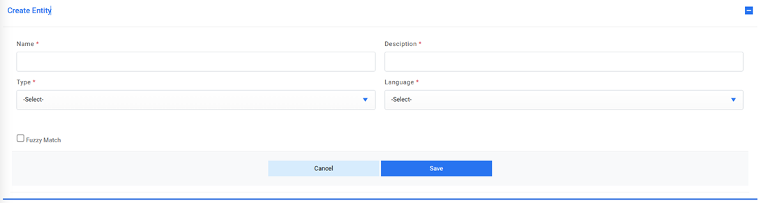 - On the Entity Creation page, type the entity name in the Name field, and then describe the entity in the Description field.