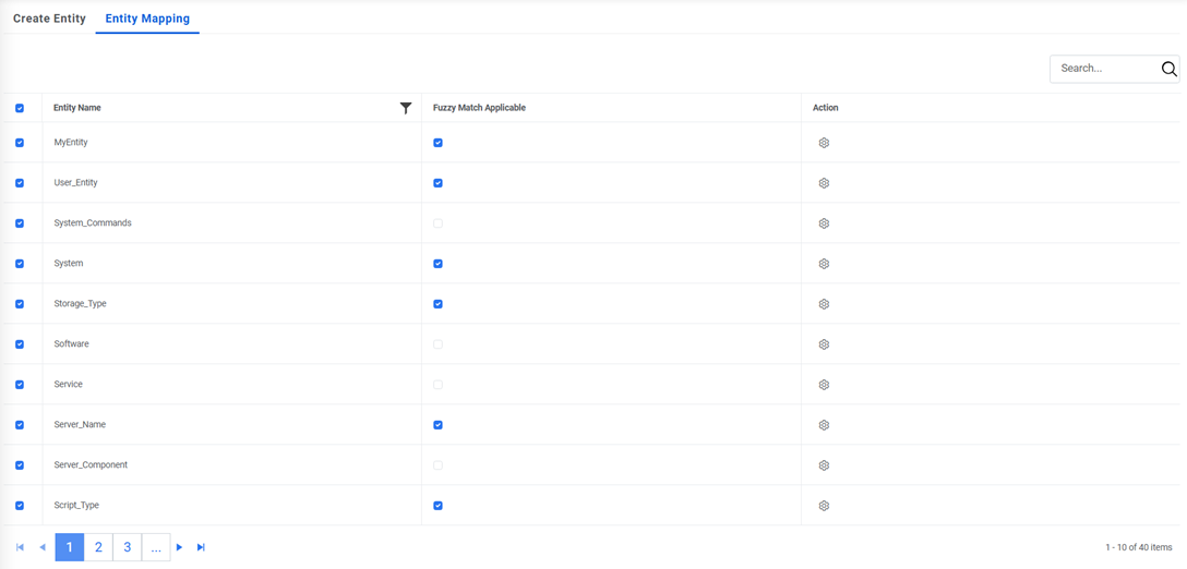 - It lists the entities created in Entity Creation tab in a tabular view.