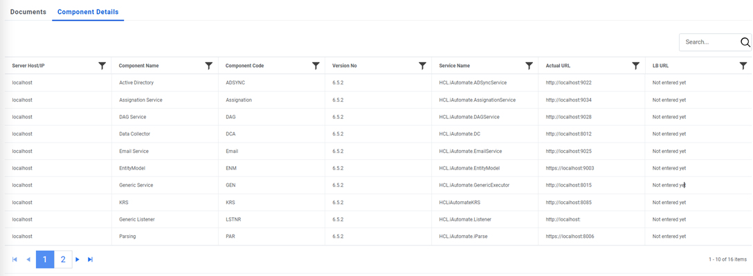 AI along with the server Host/IP on which component is running, the name of the component,