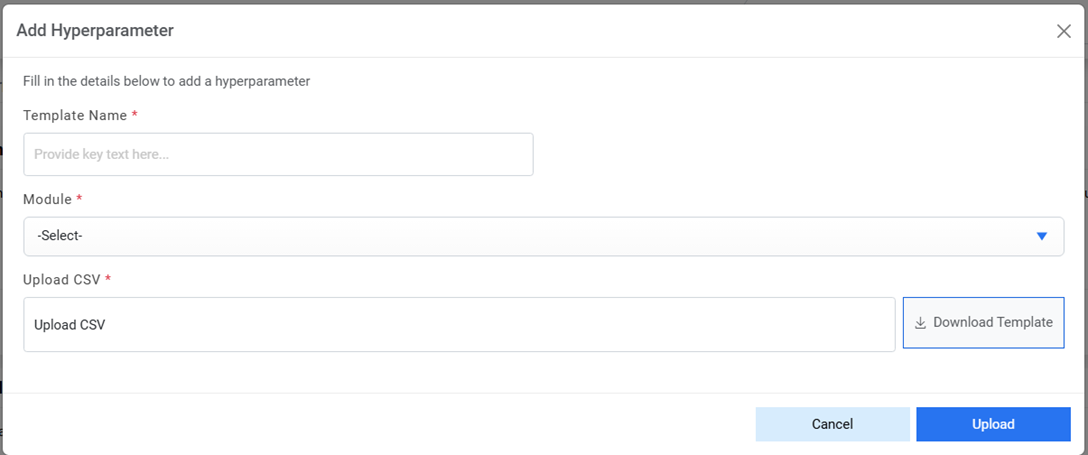 Hyperparameter popup appears.Figure 8. Add New Template (Cont.)