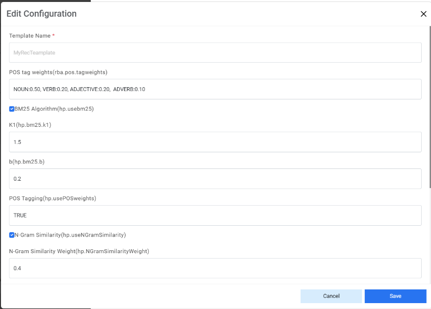 - SimilarityWeight: Specifies the value for the combined weightage of bm25 and textrank score. The value should be less than 1.