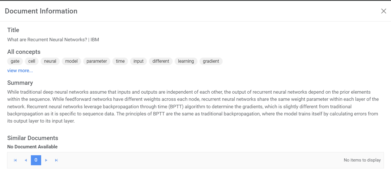 - Document Similarity View – recommends similar documents based on the currently viewed document for user’s reference.