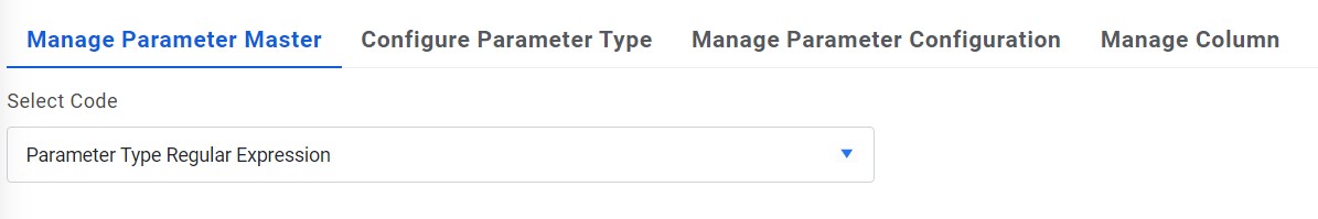 - On the Manage Parameter Master page, select a code by clicking the drop-down next