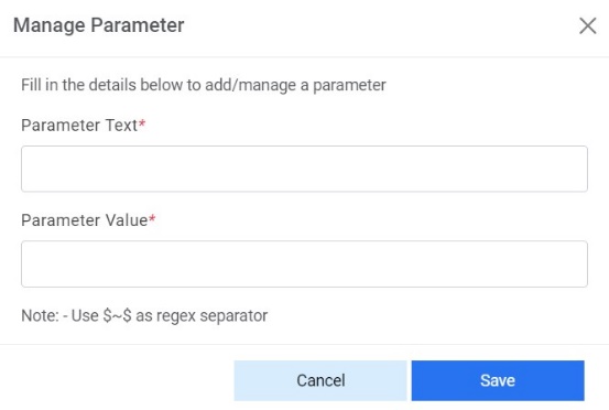 - The Manage Parameter page appears and prompts the user to specify the following