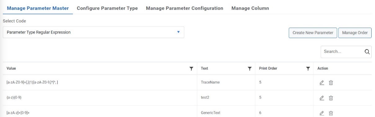 - On the Manage Parameter Master page, click