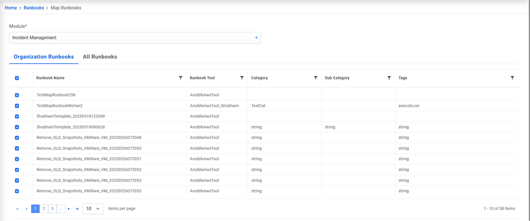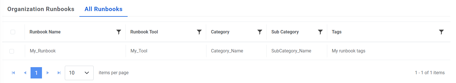 - Organization Runbooks- It lists all the runbooks mapped to the selected organization.