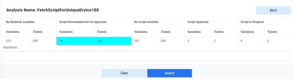 in the categories - No Runbook Available, Script Downloaded, and Script