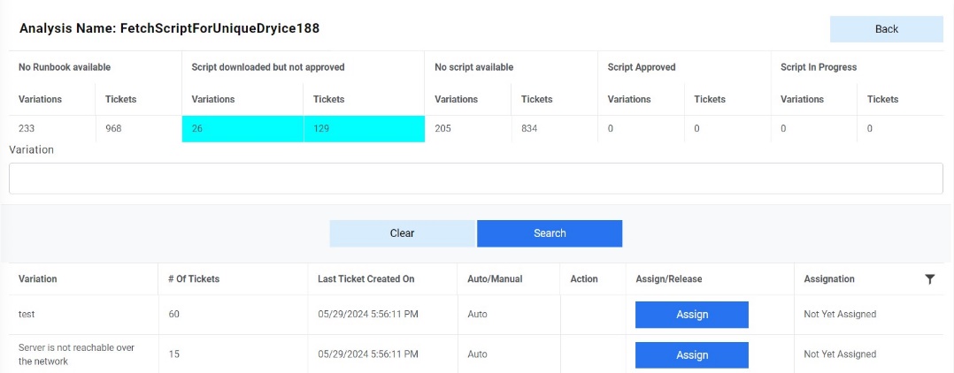 Note:Choose Clear to cancel the search. - To allow the variation to be used for script analysis, click Assign and the